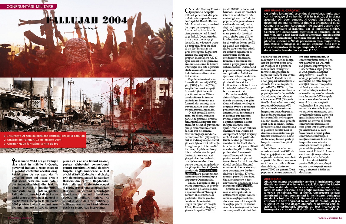 Fallujah 2004. Oraşul irakian Fallujah a căzut în mâinile Al-Quaeda, guvernul pierzând controlul asupra lui în ianuarie 2014. Acelaşi oraş era cu aproape 10 ani mai devreme scena unei intense bătălii în mediul urban.